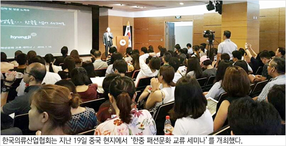 Çѱ¹ÀÇ·ù»ê¾÷Çùȸ(ȸÀå ÃÖº´¿À)´Â Áö³ 19ÀÏ Áß±¹»óÇÏÀÌÇѱ¹¹®È¿ø¿¡¼ Áß±¹ »óÇØº¹ÀåÇùȸ ÀÓ¿ø´Ü µî Áß±¹ ÀÇ·ùÆÐ¼Ç¾÷°è ÀÓÁ÷¿ø 200¿©¸íÀ» ´ë»óÀ¸·Î ¡®Áß±¹ ½ÃÀå ÁøÃâÀ» À§ÇÑ ÇÑÁß ÆÐ¼Ç¹®È ±³·ù ¼¼¹Ì³ª¡¯¸¦ °³ÃÖÇß´Ù.