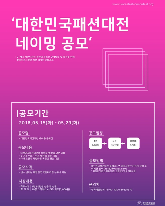 ¡ã © TIN´º½ºÇѱ¹ÆÐ¼ÇÇùȸ(ȸÀå ÇÑÁؼ®)°¡ °ø¸ðÀüÀ» ÅëÇØ ´ëÇѹα¹ÆÐ¼Ç´ëÀüÀÇ »õ·Î¿î À̸§ ã±â¿¡ ³ª¼¹´Ù. ÆÐ¼ÇÇùȸ´Â 5¿ù 29ÀϱîÁö ¡®´ëÇѹα¹ÆÐ¼Ç´ëÀü »õ À̸§ °ø¸ðÀü¡¯À» °³ÃÖÇÑ´Ù°í ¹àÇû´Ù.ÆÐ¼ÇÇùȸ °ü°èÀÚ´Â ¡°ÀþÀº ¼¼´ëµé¿¡°Ô ´Ù¼Ò ¹«°Ì°Ô ´Ù°¡¿Â´Ù´Â Á¡À» °¨¾ÈÇØ ¿ÜºÎÀÇ ´Ù¾çÇϰí Âü½ÅÇÑ ¾ÆÀ̵ð¾î¸¦ ´ëȸ ÀÌ..