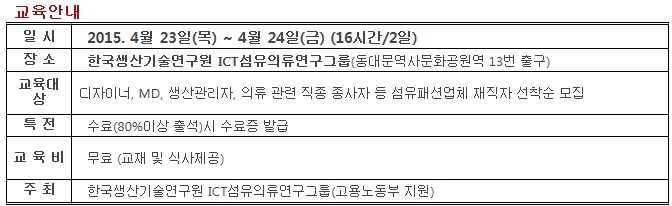 ÀÇ·ù±âȹÀÇ ¼ÒÀçÀÌÇØ ±³À° Çѱ¹»ý»ê±â¼ú¿¬±¸¿ø¿¡¼´Â ³ëµ¿ºÎ Áö¿øÀ¸·Î ''±¹°¡ÀÎÀûÀÚ¿ø°³¹ßÄÁ¼Ò½Ã¾ö»ç¾÷''À» ÅëÇØ ´Ù¾çÇÑ ±³À°À» ½ÃÇàÇϰí ÀÖ½À´Ï´Ù. º» »ç¾÷ÀÇ ±³À°À» ÅëÇØ ´ÏÆ®ÆÐ¼ÇºÐ¾ß ÀÇ·ù±âȹ ¹× »ý»ê°úÁ¤ Á¾»çÀÚµéÀÇ °í±Þ ±â¼ú·Â Çâ»óÀ» ¸ñÇ¥·Î Çϰí ÀÖ½À´Ï´Ù. ´ÏÆ® ºÐ¾ß¿¡ Á¾»çÇϰí ÀÖÀ¸¸é¼ °íºÎ°¡°¡Ä¡ ´ÏÆ® ÀÇ·ù±â..