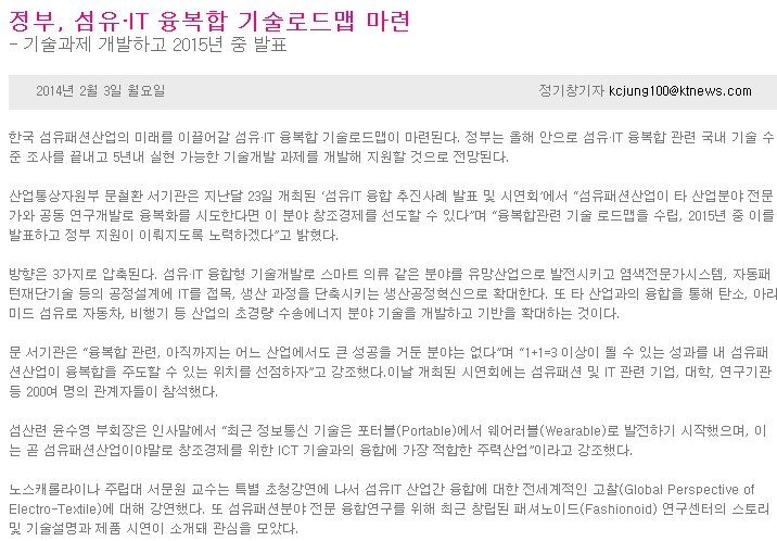 Çѱ¹ ¼¶À¯ÆÐ¼Ç»ê¾÷ÀÇ ¹Ì·¡¸¦ À̲ø¾î°¥ ¼¶À¯¡¤IT À¶º¹ÇÕ ±â¼ú·Îµå¸ÊÀÌ ¸¶·ÃµÈ´Ù. Á¤ºÎ´Â ¿ÃÇØ ¾ÈÀ¸·Î ¼¶À¯¡¤IT À¶º¹ÇÕ °ü·Ã ±¹³» ±â¼ú ¼öÁØ Á¶»ç¸¦ ³¡³»°í 5³â³» ½ÇÇö °¡´ÉÇÑ ±â¼ú°³¹ß °úÁ¦¸¦ °³¹ßÇØ Áö¿øÇÒ °ÍÀ¸·Î Àü¸ÁµÈ´Ù.»ê¾÷Åë»óÀÚ¿øºÎ ¹®Ã¶È¯ ¼±â°üÀº Áö³´Þ 23ÀÏ °³ÃÖµÈ ¡®¼¶À¯IT À¶ÇÕ ÃßÁø»ç·Ê ¹ßÇ¥ ¹× ½Ã¿¬È¸¡¯¿¡..
