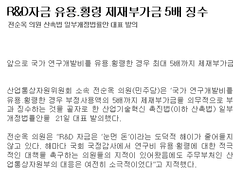 »ê¾÷Åë»óÀÚ¿øÀ§¿øÈ¸ ¼Ò¼Ó Àü¼ø¿Á ÀÇ¿ø»ê¾÷Åë»óÀÚ¿øÀ§¿øÈ¸ ¼Ò¼Ó Àü¼ø¿Á ÀÇ¿ø(¹ÎÁÖ´ç)Àº ¡®±¹°¡ ¿¬±¸°³¹ßºñ¸¦ À¯¿ë․Ⱦ·ÉÇÑ °æ¿ì ºÎÁ¤»ç¿ë¾×ÀÇ 5¹è±îÁö Á¦ÀçºÎ°¡±ÝÀ» Àǹ«ÀûÀ¸·Î ºÎ°ú ¡¼öÇÏ..