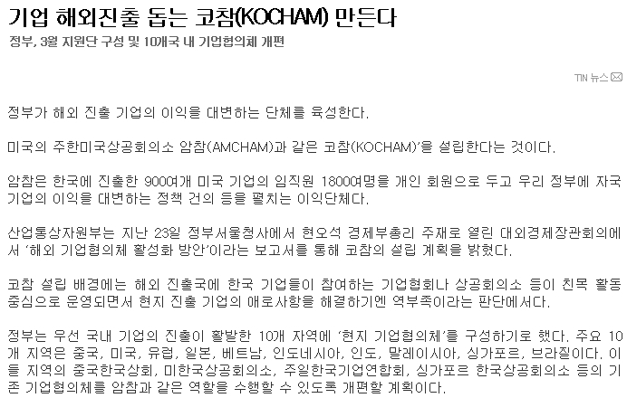 ±â¾÷ ÇØ¿ÜÁøÃâ µ½´Â ÄÚÂü(KOCHAM) ¸¸µç´Ù